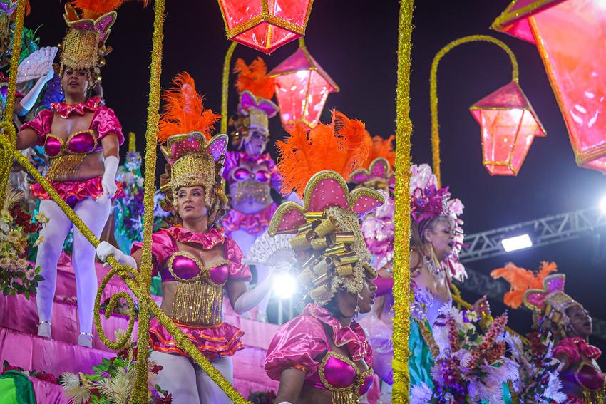 Porto Alegre, RS, Brasil, 01/03/2026: A S.C.B. Acadêmicos de Gravataí, que desfilou neste sábado, 28, teve como enredo a Amazônia Táwapayêra – A Aldeia Guardiã dos Encantos da Floresta. A escola trouxe um mergulho profundo nas raízes de um Brasil indígena, caboclo e ribeirinho, celebrando a floresta não apenas como um espaço geográfico, mas como um território sagrado de mitos e ancestralidades. A narrativa destacou a resistência dos povos originários e a proteção do Eldorado Verde contra a cobiça histórica. Foto: Alex Rocha/PMPA