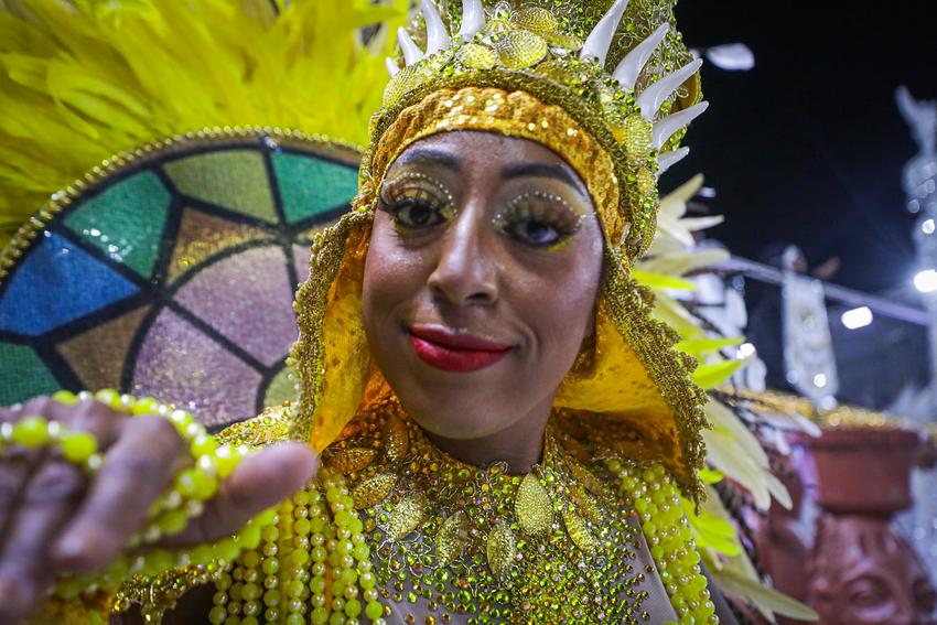 Porto Alegre, RS, Brasil, 01/03/2026: A S.B.R. Imperadores do Samba entra na avenida na madrugada deste domingo (01) com o enredo Orin Alá – Canto para Sonhar. A escola narrou a lenda da princesa africana Orin Alá, cuja trajetória é marcada pela ruptura da paz em sua terra natal, o sequestro por navios negreiros e a resistência através do seu canto sagrado em solo brasileiro. A narrativa exalta a voz como um instrumento de cura e liberdade, capaz de conduzir um sonho coletivo que reconecta o povo escravizado às suas raízes e identidade africana. Foto: Alex Rocha/PMPA
