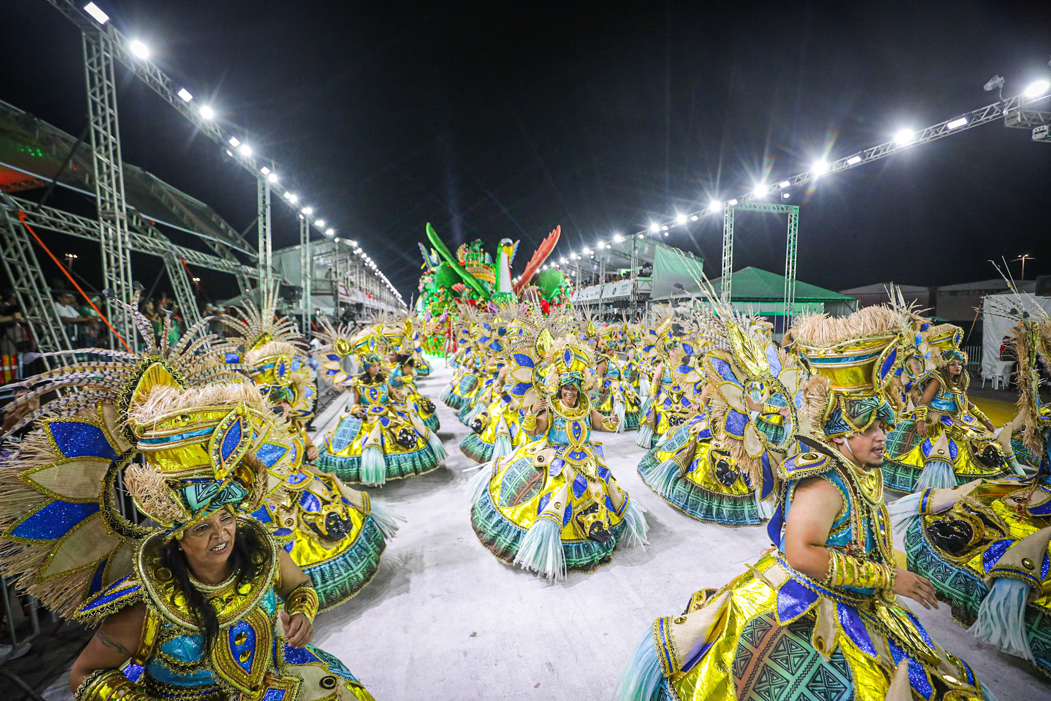 Porto Alegre, RS, Brasil, 01/03/2026: A S.R.B. Estado Maior da Restinga participou do Carnaval de Porto Alegre na madrugada deste domingo (01). A escola apresentou o enredo Restinga, o canto de todos os povos, que reconta a trajetória do bairro, desde a sua ocupação por famílias removidas de diversas áreas de Porto Alegre até a transformação em um polo de cultura e resistência. A narrativa exaltou a superação de um povo que, diante do esquecimento social, construiu com as próprias mãos uma cidade vibrante. Foto: Alex Rocha/PMPA