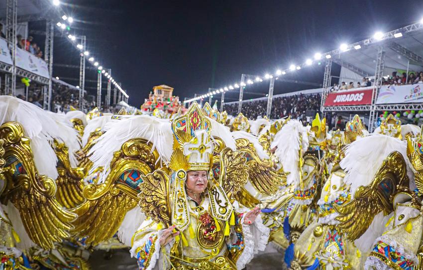 Porto Alegre, RS, Brasil, 01/03/2026: A S.R.B. Estado Maior da Restinga participou do Carnaval de Porto Alegre na madrugada deste domingo (01). A escola apresentou o enredo Restinga, o canto de todos os povos, que reconta a trajetória do bairro, desde a sua ocupação por famílias removidas de diversas áreas de Porto Alegre até a transformação em um polo de cultura e resistência. A narrativa exaltou a superação de um povo que, diante do esquecimento social, construiu com as próprias mãos uma cidade vibrante. Foto: Alex Rocha/PMPA