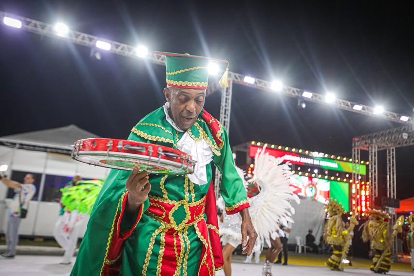 Porto Alegre, RS, Brasil, 01/03/2026: A S.R.B. Estado Maior da Restinga participou do Carnaval de Porto Alegre na madrugada deste domingo (01). A escola apresentou o enredo Restinga, o canto de todos os povos, que reconta a trajetória do bairro, desde a sua ocupação por famílias removidas de diversas áreas de Porto Alegre até a transformação em um polo de cultura e resistência. A narrativa exaltou a superação de um povo que, diante do esquecimento social, construiu com as próprias mãos uma cidade vibrante. Foto: Alex Rocha/PMPA