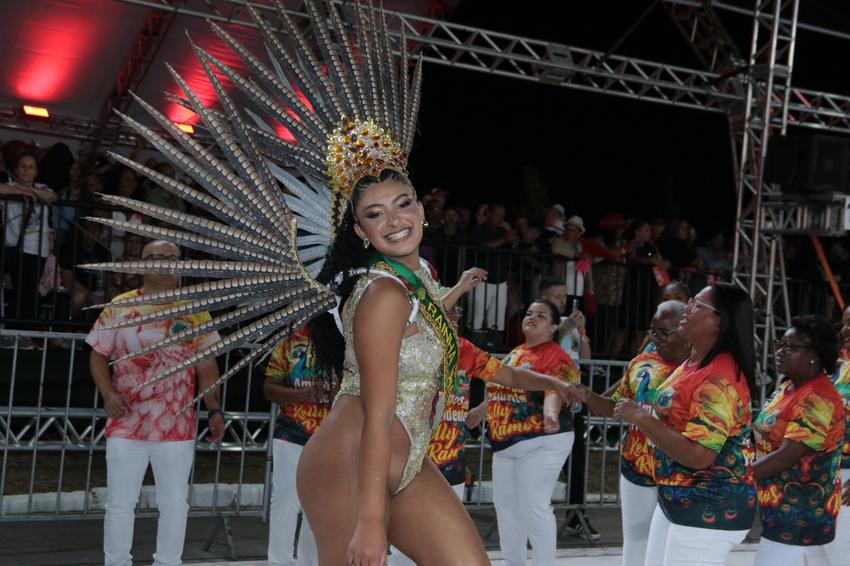 Porto Alegre, RS, Brasil, 28/02/2026: A Sociedade Recreativa Beneficente Carnavalesca Academia de Samba União da Tinga levará para a avenida, neste sábado, 28, o enredo O Pavão vai desfilar todo encanto, força e importância das águas!. O desfile é um manifesto que reafirma a conexão intrínseca entre a humanidade e o recurso mais precioso do planeta, tratando a água como fonte primordial de vida, cultura e espiritualidade. Foto: David Pires