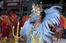Porto Alegre, RS, Brasil, 28/02/2026: A Sociedade Recreativa Beneficente Carnavalesca Academia de Samba União da Tinga levará para a avenida, neste sábado, 28, o enredo O Pavão vai desfilar todo encanto, força e importância das águas!. O desfile é um manifesto que reafirma a conexão intrínseca entre a humanidade e o recurso mais precioso do planeta, tratando a água como fonte primordial de vida, cultura e espiritualidade. Foto: David Pires
