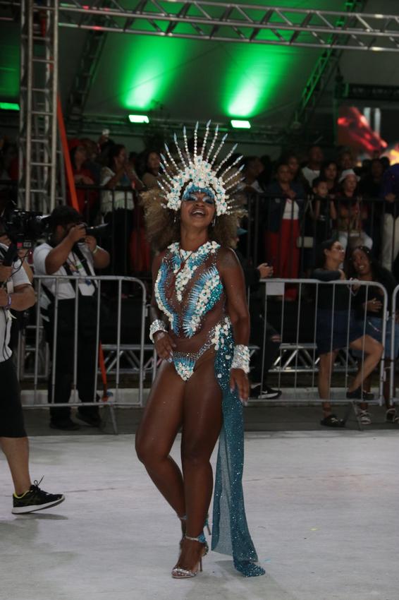 Porto Alegre, RS, Brasil, 28/02/2026: A Sociedade Recreativa Beneficente Carnavalesca Academia de Samba União da Tinga levará para a avenida, neste sábado, 28, o enredo O Pavão vai desfilar todo encanto, força e importância das águas!. O desfile é um manifesto que reafirma a conexão intrínseca entre a humanidade e o recurso mais precioso do planeta, tratando a água como fonte primordial de vida, cultura e espiritualidade. Foto: David Pires
