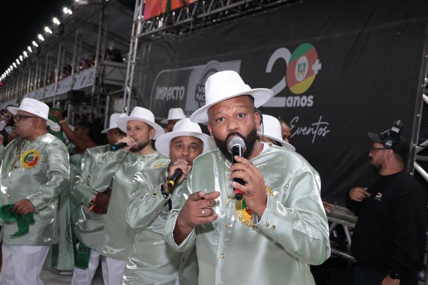Porto Alegre, RS, Brasil, 28/02/2026: A Sociedade Recreativa Beneficente Carnavalesca Academia de Samba União da Tinga levará para a avenida, neste sábado, 28, o enredo O Pavão vai desfilar todo encanto, força e importância das águas!. O desfile é um manifesto que reafirma a conexão intrínseca entre a humanidade e o recurso mais precioso do planeta, tratando a água como fonte primordial de vida, cultura e espiritualidade. Foto: David Pires