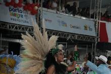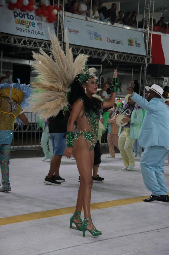 Porto Alegre, RS, Brasil, 28/02/2026: A Sociedade Recreativa Beneficente Carnavalesca Academia de Samba União da Tinga levará para a avenida, neste sábado, 28, o enredo O Pavão vai desfilar todo encanto, força e importância das águas!. O desfile é um manifesto que reafirma a conexão intrínseca entre a humanidade e o recurso mais precioso do planeta, tratando a água como fonte primordial de vida, cultura e espiritualidade. Foto: David Pires