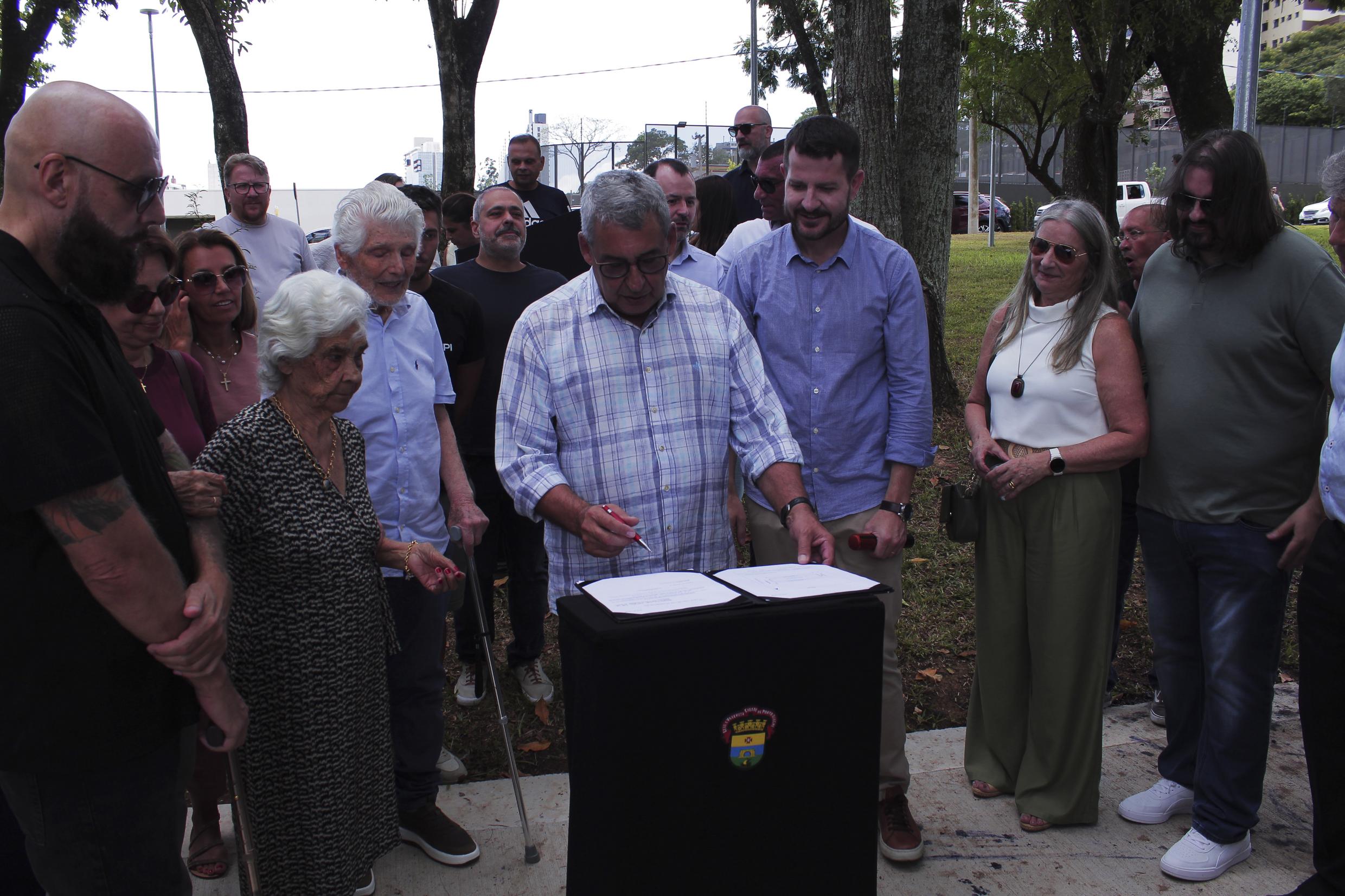 Porto Alegre, RS, Brasil, 28/02/2026: A capital gaúcha tem um novo espaço de lazer e convívio no bairro Petrópolis. A Praça José Luiz Fernandes Cogo foi entregue à comunidade, neste sábado, 28, pelo prefeito Sebastião Melo e pelo secretário do Meio Ambiente, Urbanismo e Sustentabilidade, Germano Bremm. Localizada no cruzamento da Avenida Professor Cristiano Fischer com as ruas Winston Churchill, Pirâmide e João Benjamin Zaffari, é uma homenagem ao engenheiro civil, professor e servidor público que dedicou quase quatro décadas à Prefeitura da Cidade. Foto: Alejandro Sanchez/SMAMUS