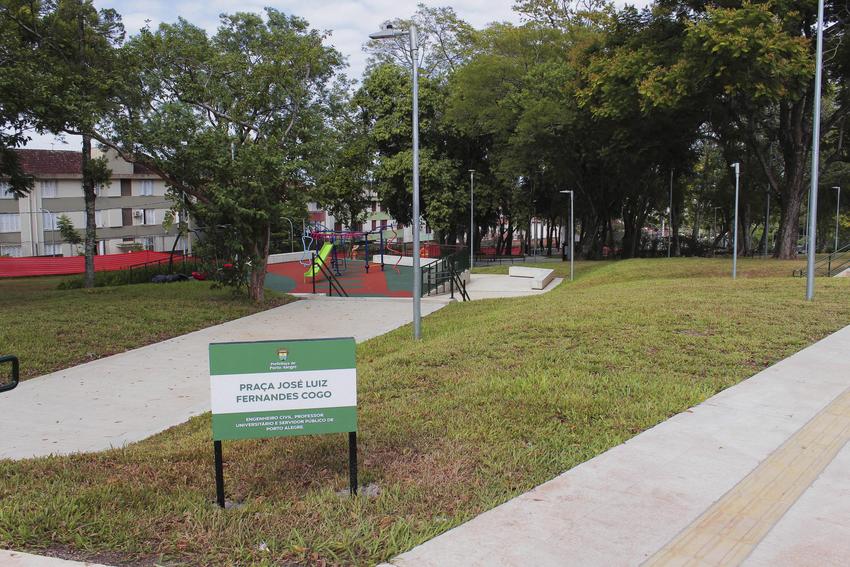 Porto Alegre, RS, Brasil, 28/02/2026: A capital gaúcha tem um novo espaço de lazer e convívio no bairro Petrópolis. A Praça José Luiz Fernandes Cogo foi entregue à comunidade, neste sábado, 28, pelo prefeito Sebastião Melo e pelo secretário do Meio Ambiente, Urbanismo e Sustentabilidade, Germano Bremm. Localizada no cruzamento da Avenida Professor Cristiano Fischer com as ruas Winston Churchill, Pirâmide e João Benjamin Zaffari, é uma homenagem ao engenheiro civil, professor e servidor público que dedicou quase quatro décadas à Prefeitura da Cidade. Foto: Alejandro Sanchez/SMAMUS