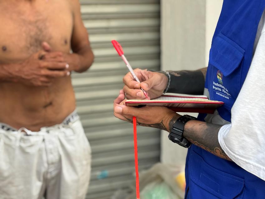 Porto Alegre, RS, 09/02/2026 Redutores de danos atuando junto com a equipe do Consultório na Rua da Clínica da Família Campo da Tuca na imediações do viaduto São Jorge, bairro Partenon. Foto: Cristiano Vargas/Divulgação SMS/PMPA