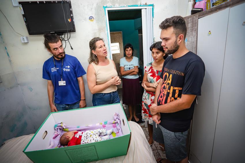 Porto Alegre, RS, 16/01/2026 A Secretaria Municipal de Saúde de Porto Alegre, através da através da a Diretoria de Atenção primária à Saúde (DAPS), área técnica da Saúde da Criança e Adolecente, inicia a entrega de caixas-berço com colchão e fraldas para famílias em situação de vulnerabilidade. A iniciativa visa garantir um sono seguro aos bebês nos primeiros meses de vida, prevenindo mortes domiciliares e reduzindo a mortalidade infantil na capital.