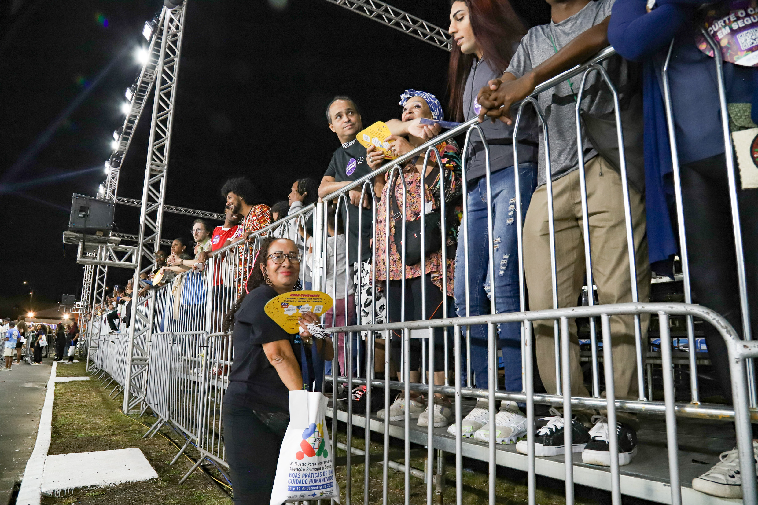 Porto Alegre, RS, 27/02/2026 O Carnaval de Porto Alegre no Complexo Cultural do Porto Seco contou com uma estrutura completa de saúde para o público. Além de uma UPA, equipes volantes realizaram ações preventivas com distribuição de materiais sobre dengue e ISTs, entrega de preservativos, lubrificantes, autotestes de HIV e hidratação. O destaque ficou para o Bloco da Saúde, que levou cerca de 250 servidores à avenida com samba-enredo próprio e a presença ilustre do Zé Gotinha e sua família. Foto: Cristine Rochol/PMPA