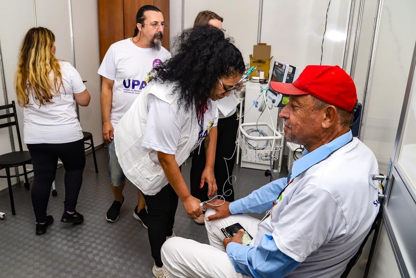 Porto Alegre, RS, 27/02/2026 O Carnaval de Porto Alegre no Complexo Cultural do Porto Seco contou com uma estrutura completa de saúde para o público. Além de uma UPA, equipes volantes realizaram ações preventivas com distribuição de materiais sobre dengue e ISTs, entrega de preservativos, lubrificantes, autotestes de HIV e hidratação. O destaque ficou para o Bloco da Saúde, que levou cerca de 250 servidores à avenida com samba-enredo próprio e a presença ilustre do Zé Gotinha e sua família. Foto: Cristine Rochol/PMPA