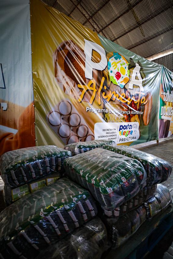 Porto Alegre, RS, Brasil, 03/03/2026: A Prefeitura de Porto Alegre realizou nesta terça-feira, 3, às 10h, o lançamento oficial do programa POA Alimenta, com a entrega da Unidade de Recebimento e Distribuição de Alimentos, instalada no ginásio do Departamento Municipal de Habitação, na rua Conde D’Eu, 66, bairro Santana. A estrutura, coordenada pela Secretaria Municipal da Inclusão e Desenvolvimento Humano (Smidh), passa a centralizar o recebimento e a logística de alimentos destinados a 119 cozinhas comunitárias e pontos de entrega populares em diferentes regiões da Capital. Foto: Alex Rocha/PMPA