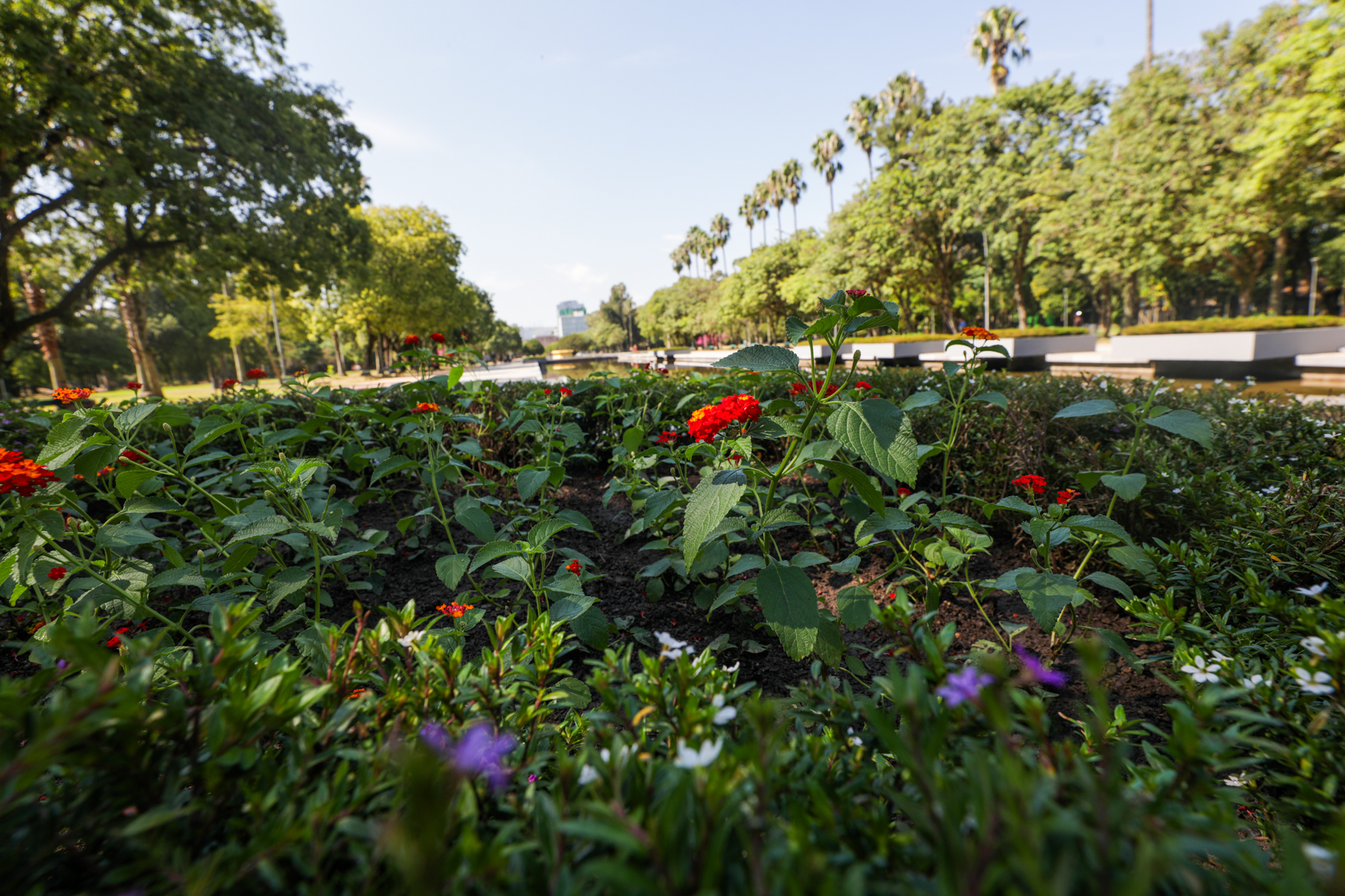 Porto Alegre, RS, 05, Brasil/03/2026: Plantio de novas folhagens e espécies vegetais nas floreiras junto ao espelho d'água do Parque Farroupilha (Redenção). Foto: Pedro Piegas/PMPA