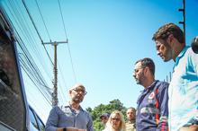 Participaram da entrega o secretário da SMS, Fernando Ritter, o coordenador do Samu POA, Fabiano Barrionuevo, a coordenadora municipal de urgências, Cátia Stein e o vereador Jesse Sangalli. Foto: Cristine Rochol/PMPA