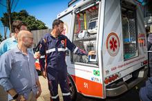 Participaram da entrega o secretário da SMS, Fernando Ritter, o coordenador do Samu POA, Fabiano Barrionuevo, a coordenadora municipal de urgências, Cátia Stein e o vereador Jesse Sangalli. Foto: Cristine Rochol/PMPA