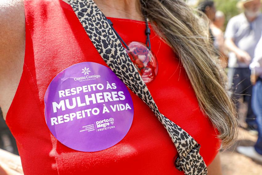 Porto Alegre, RS, Brasil, 06/03/2026: A Prefeitura de Porto Alegre entregou nesta sexta-feira, 6, o primeiro banco vermelho instalado pelo município em praças e parques da cidade, na Praça da Alfândega. A iniciativa integra um projeto de conscientização e enfrentamento à violência contra a mulher. Foto: Alex Rocha/PMPA