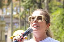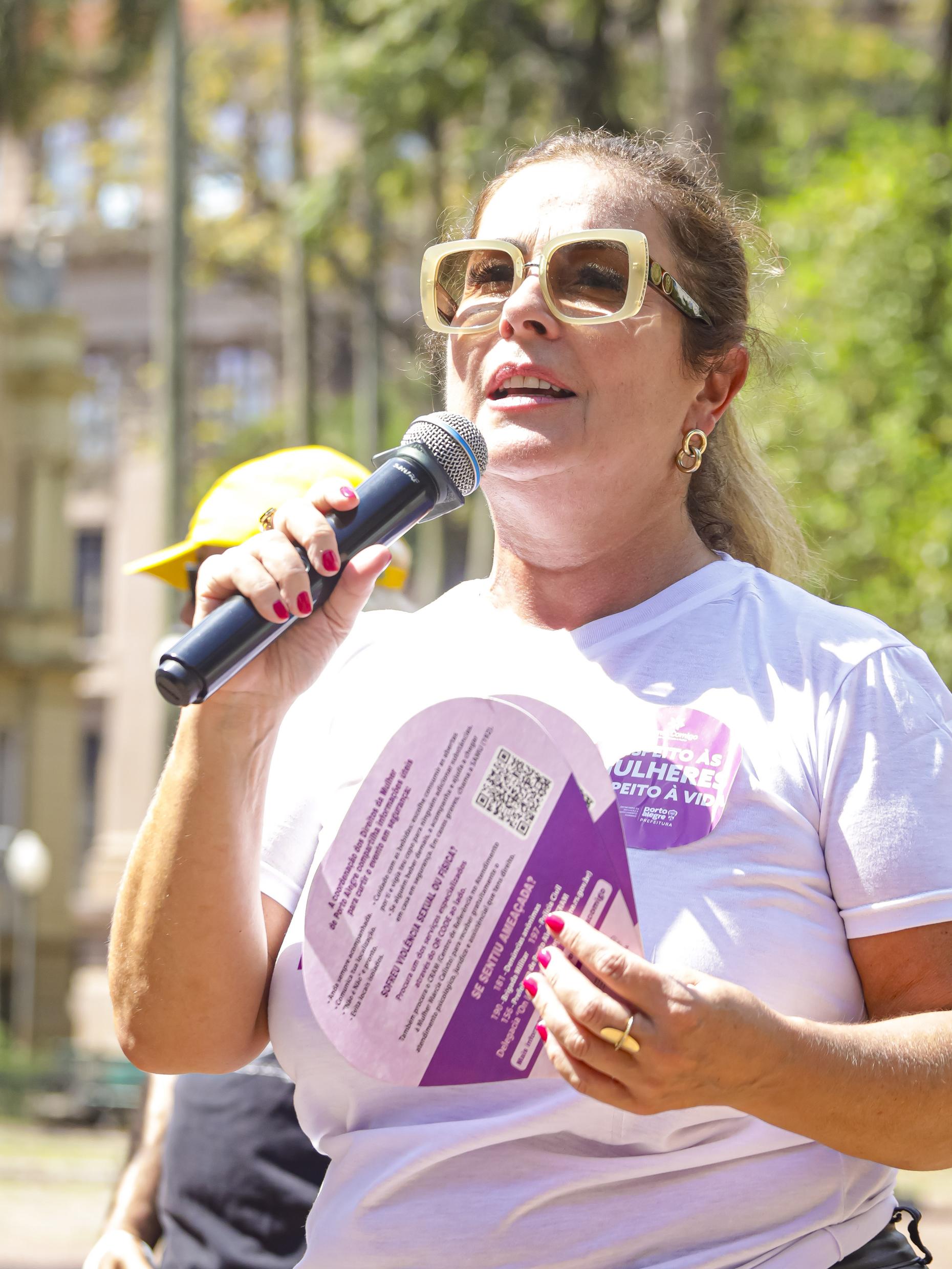 Porto Alegre, RS, Brasil, 06/03/2026: A Prefeitura de Porto Alegre entregou nesta sexta-feira, 6, o primeiro banco vermelho instalado pelo município em praças e parques da cidade, na Praça da Alfândega. A iniciativa integra um projeto de conscientização e enfrentamento à violência contra a mulher. Foto: Alex Rocha/PMPA