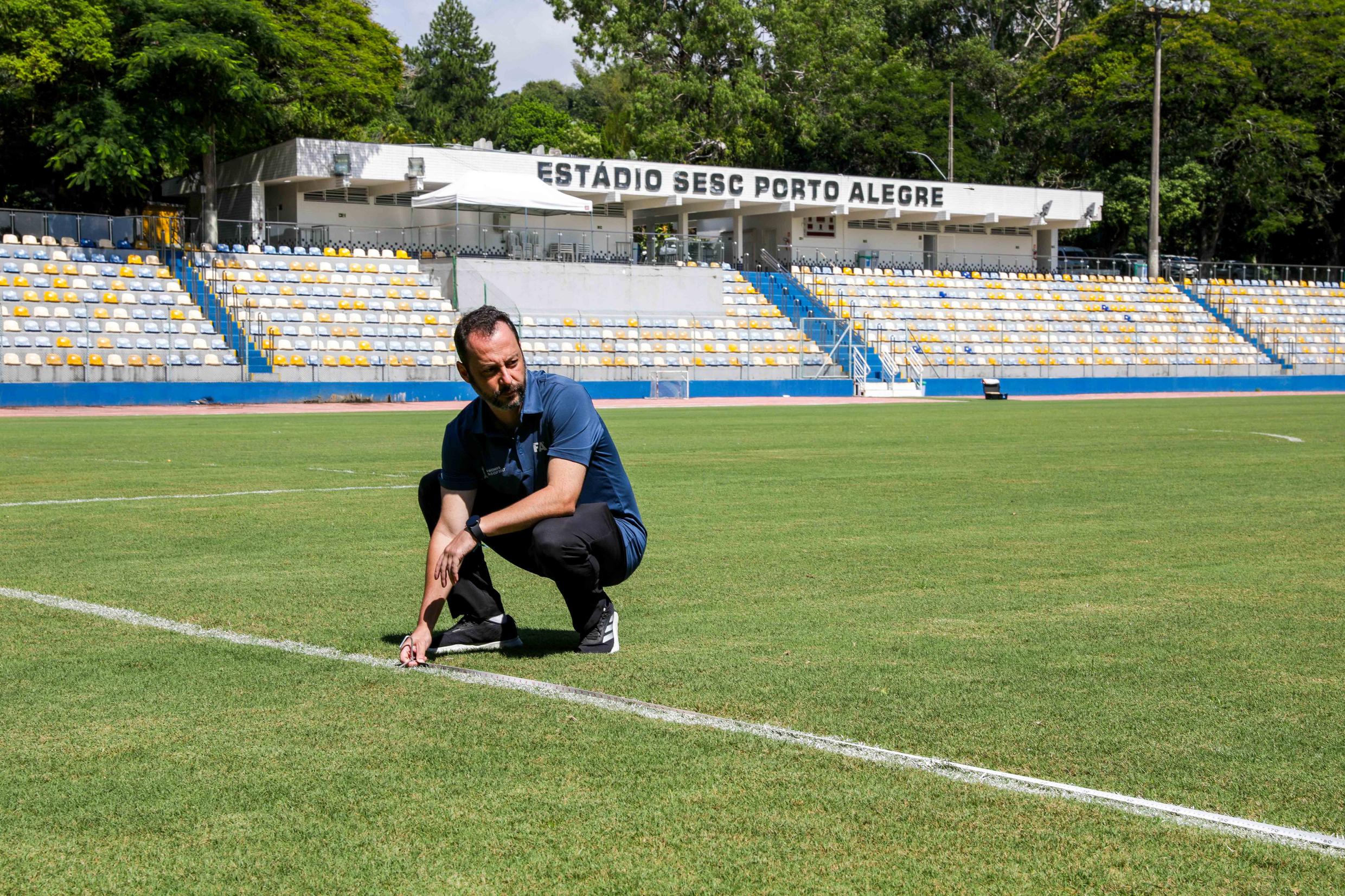 Porto Alegre, RS, 07/03/2026 - Vistoria nos campos de treinamento de Porto Alegre para a Copa do Mundo Feminina 2027. Na vistoria foram analisados gramado, drenagem e estrutura dos locais. Fotos no Sesc Protásio Alves. Fotos: Pedro Piegas / PMPA