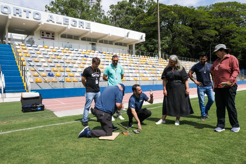 Porto Alegre, RS, 07/03/2026 - Vistoria nos campos de treinamento de Porto Alegre para a Copa do Mundo Feminina 2027. Na vistoria foram analisados gramado, drenagem e estrutura dos locais. Fotos no Sesc Protásio Alves. Fotos: Pedro Piegas / PMPA