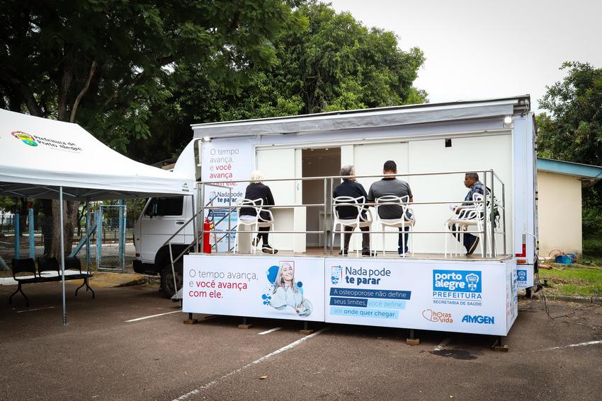 Porto Alegre, RS, 09/03/2026 A Secretaria Municipal de Saúde, em parceria com a ONG Horas da Vida, de São Paulo, promove a partir desta segunda-feira, 9, mutirão para oferecer 360 exames de densitometria óssea a pessoas que aguardam na fila do Sistema de Gerenciamento de Consultas (Gercon). Os atendimentos ocorrem até 27 de março, de segunda a sexta-feira, em unidade móvel que estará estacionada na avenida Érico Veríssimo, 100. A ação resulta de termo de cooperação com a ONG sem ônus para o município. O encaminhamento é feito pelas unidades de saúde. Foto: Cristine Rochol/PMPA