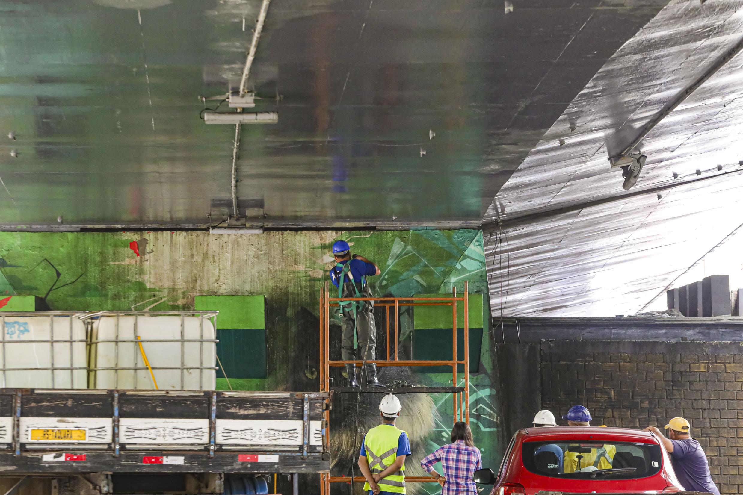 Porto Alegre, RS, Brasil, 10/03/2026: Iniciaram nesta terça-feira (10), os serviços de limpeza do Viaduto Tiradentes, no bairro Santa Cecília. Foto: Alex Rocha/PMPA