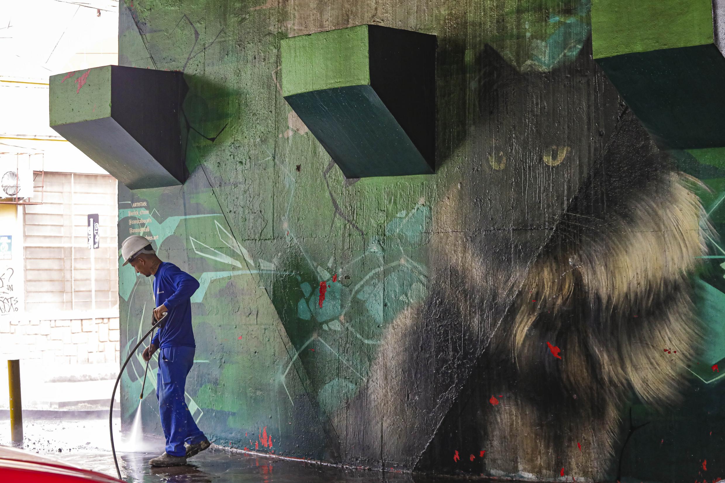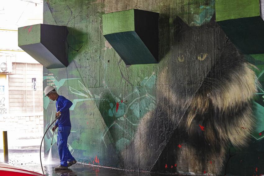 Porto Alegre, RS, Brasil, 10/03/2026: Iniciaram nesta terça-feira (10), os serviços de limpeza do Viaduto Tiradentes, no bairro Santa Cecília. Foto: Alex Rocha/PMPA