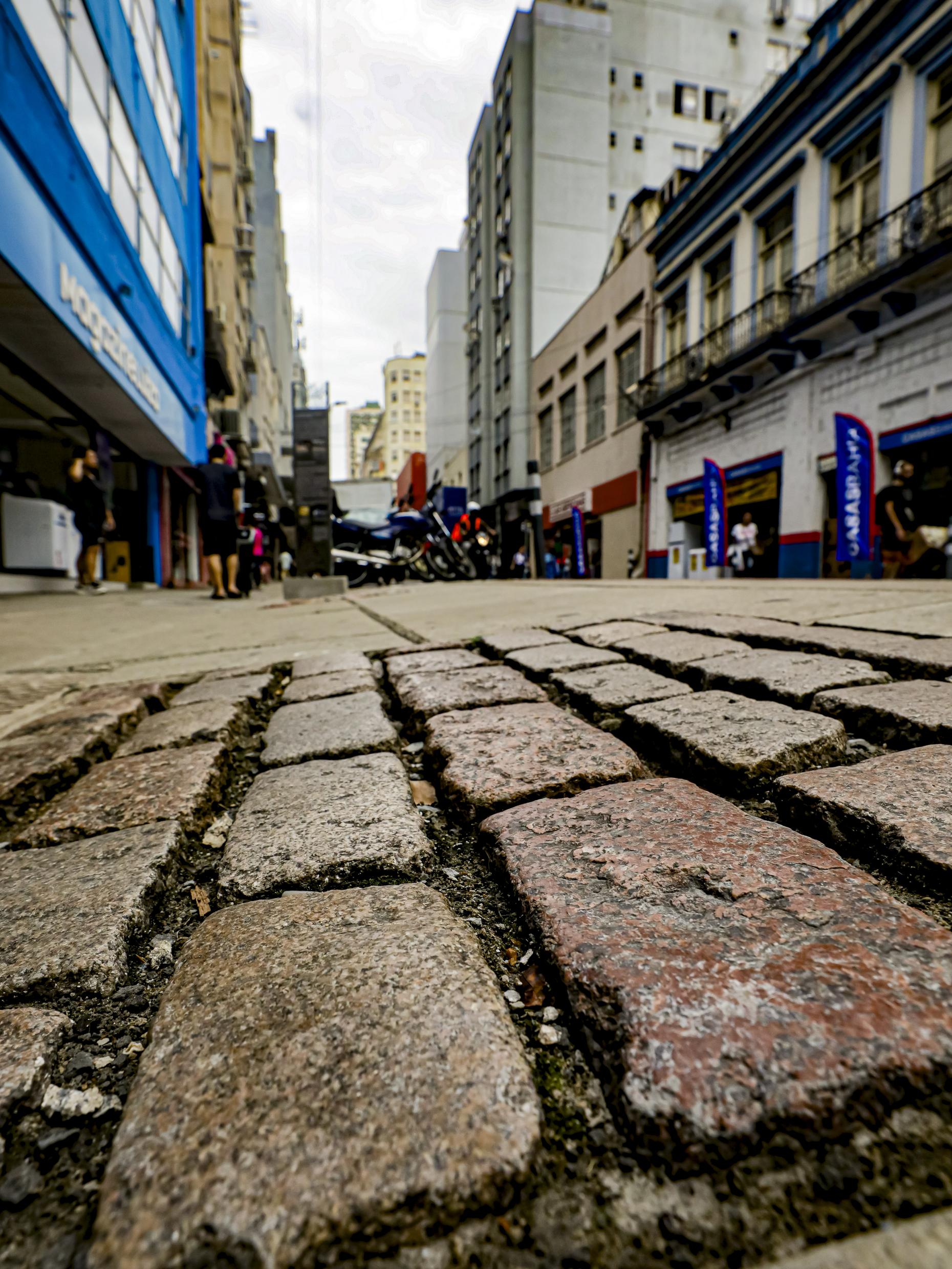 Porto Alegre, RS, Brasil, 10/03/2026: Nesta segunda-feira, 9, Porto Alegre passou a contar com o primeiro sítio arqueológico sinalizado em espaço aberto. A descoberta ocorreu durante a primeira etapa das obras de revitalização das nove vias que compõem o Quadrilátero Central, no Centro Histórico. Durante escavações na rua Doutor Flores, equipes encontraram um antigo calçamento de pedra utilizado entre 1912 e 1928, segundo a Secretaria Municipal de Obras e Infraestrutura (Smoi). Parte da estrutura foi preservada no local e passou a integrar uma sinalização patrimonial aberta à visitação. Foto: Alex Rocha/PMPA