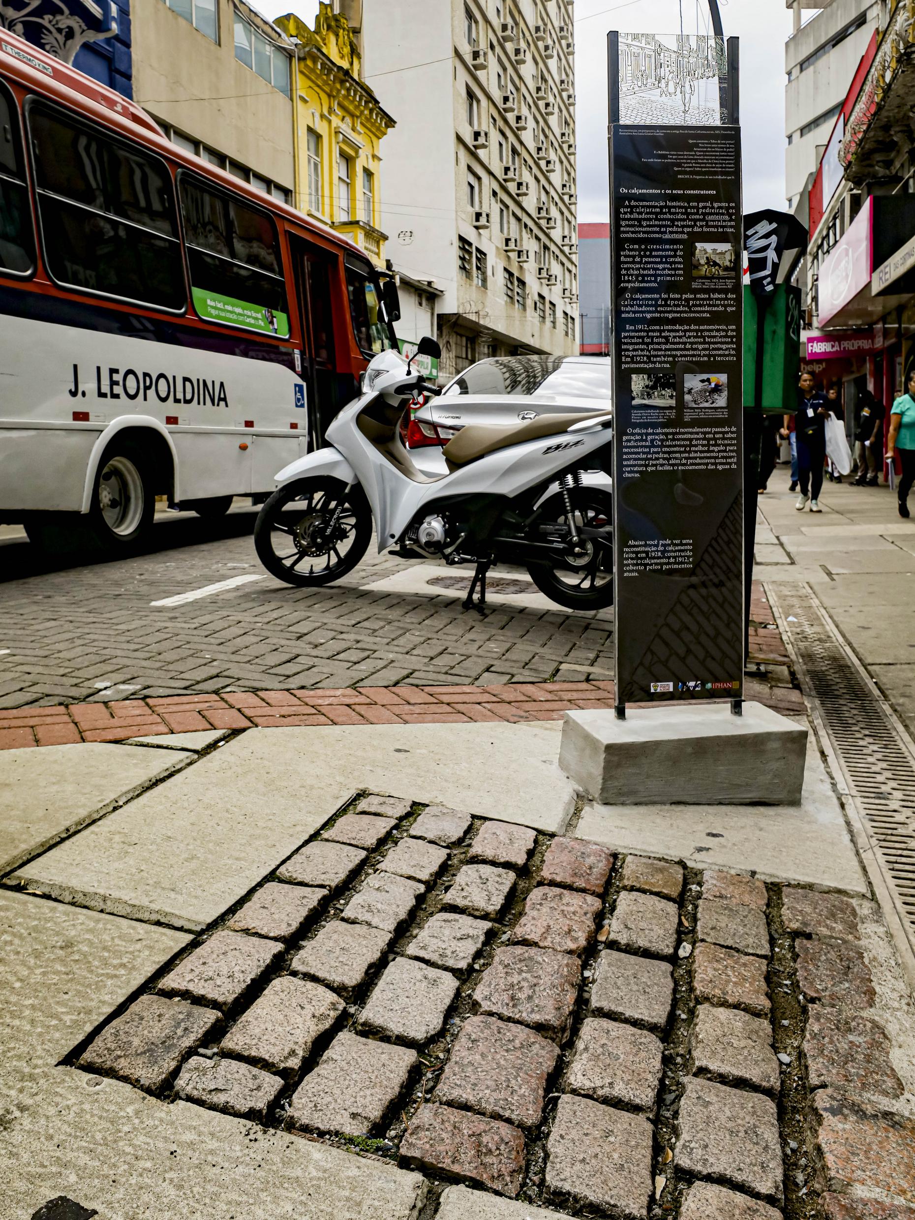 Porto Alegre, RS, Brasil, 10/03/2026: Nesta segunda-feira, 9, Porto Alegre passou a contar com o primeiro sítio arqueológico sinalizado em espaço aberto. A descoberta ocorreu durante a primeira etapa das obras de revitalização das nove vias que compõem o Quadrilátero Central, no Centro Histórico. Durante escavações na rua Doutor Flores, equipes encontraram um antigo calçamento de pedra utilizado entre 1912 e 1928, segundo a Secretaria Municipal de Obras e Infraestrutura (Smoi). Parte da estrutura foi preservada no local e passou a integrar uma sinalização patrimonial aberta à visitação. Foto: Alex Rocha/PMPA