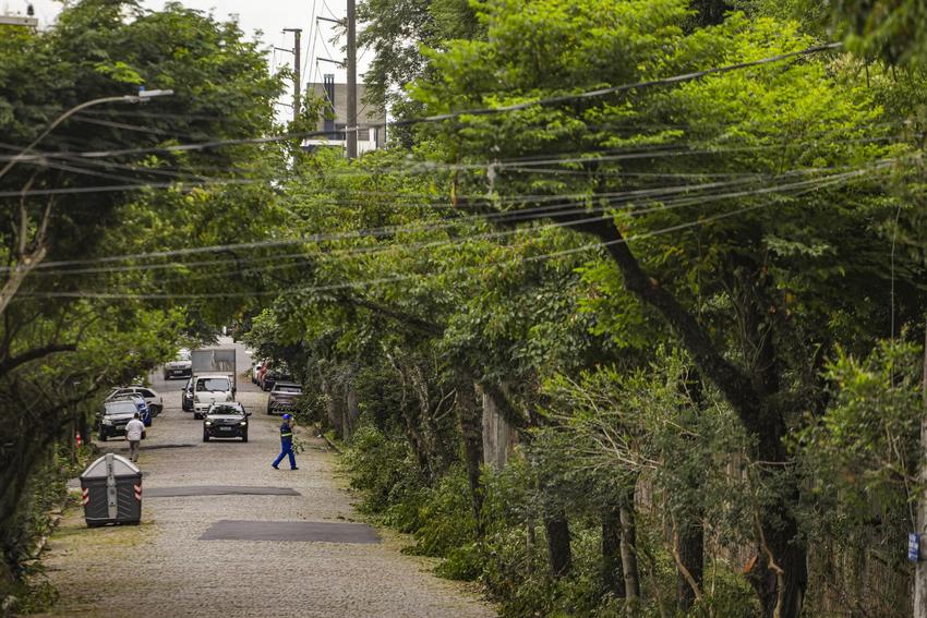 Porto Alegre, RS, Brasil, 11/03/2026: Equipes da prefeitura realizaram, nesta quarta-feira (11), o serviço de podas de manutenção na Rua Dr. Eduardo Chartier, no Bairro Higienópolis. Foto: Alex Rocha/PMPA