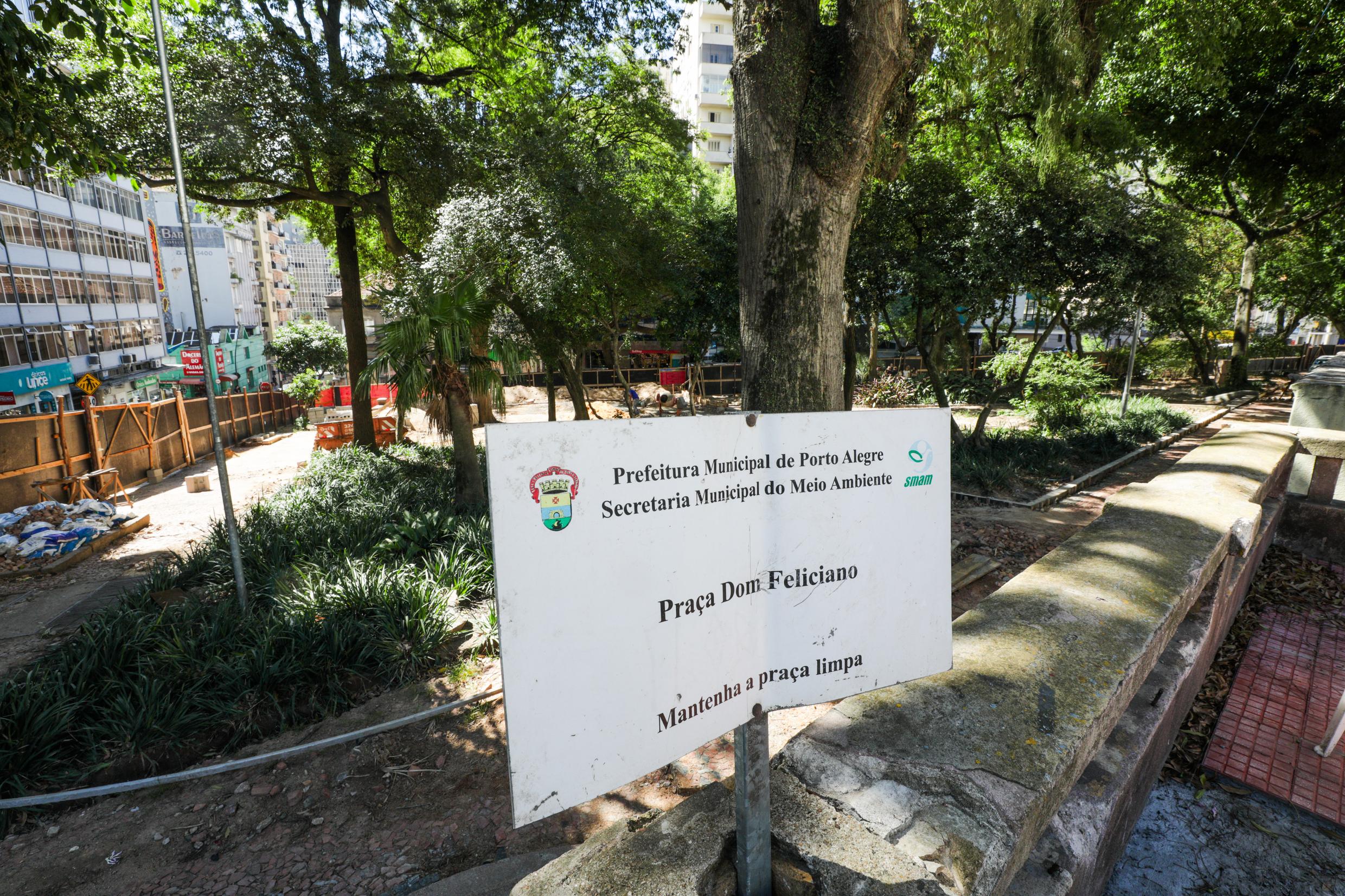 Porto Alegre, RS, 13/03/2026 - Nesta sexta-feira, 13, representantes da Secretaria Municipal de Serviços Urbanos (SMSUrb) realizaram vistoria nas obras de revitalização da Praça Dom Feliciano, localizada no Centro Histórico e reconhecida como uma das áreas públicas mais tradicionais da Capital. As ações são coordenadas em parceria com as secretarias de Meio Ambiente, Urbanismo e Sustentabilidade (Smamus) e da Cultura (SMC) iniciaram em novembro do ano passado. Fotos: Pedro Piegas/PMPA