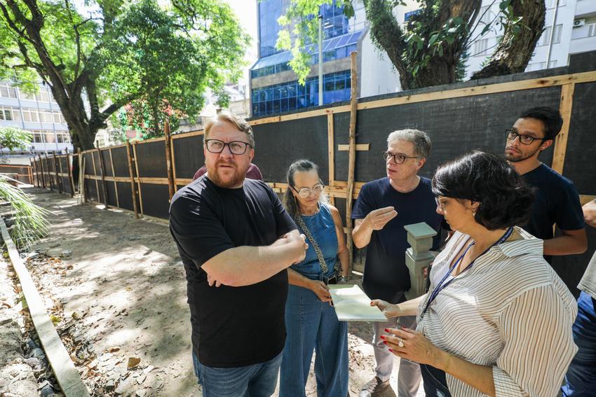 Porto Alegre, RS, 13/03/2026 - Nesta sexta-feira, 13, representantes da Secretaria Municipal de Serviços Urbanos (SMSUrb) realizaram vistoria nas obras de revitalização da Praça Dom Feliciano, localizada no Centro Histórico e reconhecida como uma das áreas públicas mais tradicionais da Capital. As ações são coordenadas em parceria com as secretarias de Meio Ambiente, Urbanismo e Sustentabilidade (Smamus) e da Cultura (SMC) iniciaram em novembro do ano passado. Fotos: Pedro Piegas/PMPA