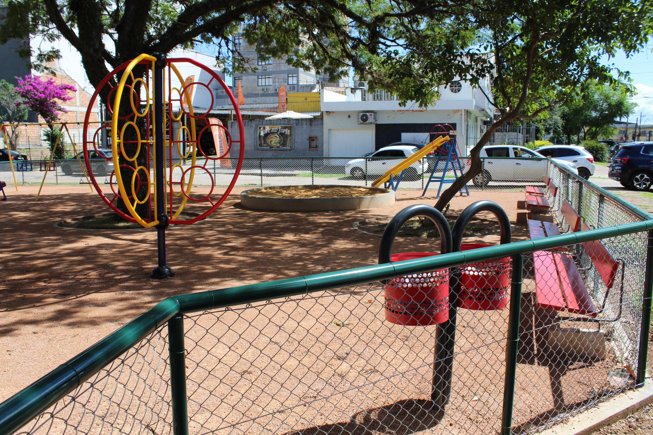 Porto Alegre, RS, Brasil, 16/03/2026. A Secretaria Municipal do Meio Ambiente, Urbanismo e Sustentabilidade (Smamus) concluiu a obra de revitalização do recanto infantil da Praça Parque dos Nativos, no bairro Vila Ipiranga. O espaço ganhou uma área cercada de 335 metros quadrados, com novos brinquedos e mobiliário, ampliando as opções de lazer para comunidade.