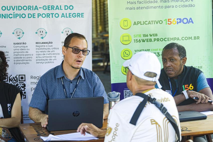 Porto Alegre, RS, Brasil, 16/03/2026: A Prefeitura de Porto Alegre promove nesta segunda-feira, 16, um mutirão de atendimento ao consumidor no Largo Glênio Peres, ao lado do Mercado Público, no Centro Histórico. A ação ocorre das 10h às 16h e é alusiva ao Dia do Consumidor, celebrado em março. A iniciativa, da Secretaria Municipal de Transparência e Controladoria (SMTC) e do Procon Porto Alegre, reunirá serviços voltados à orientação e ao atendimento direto à população. Foto: Alex Rocha/PMPA