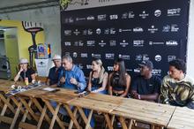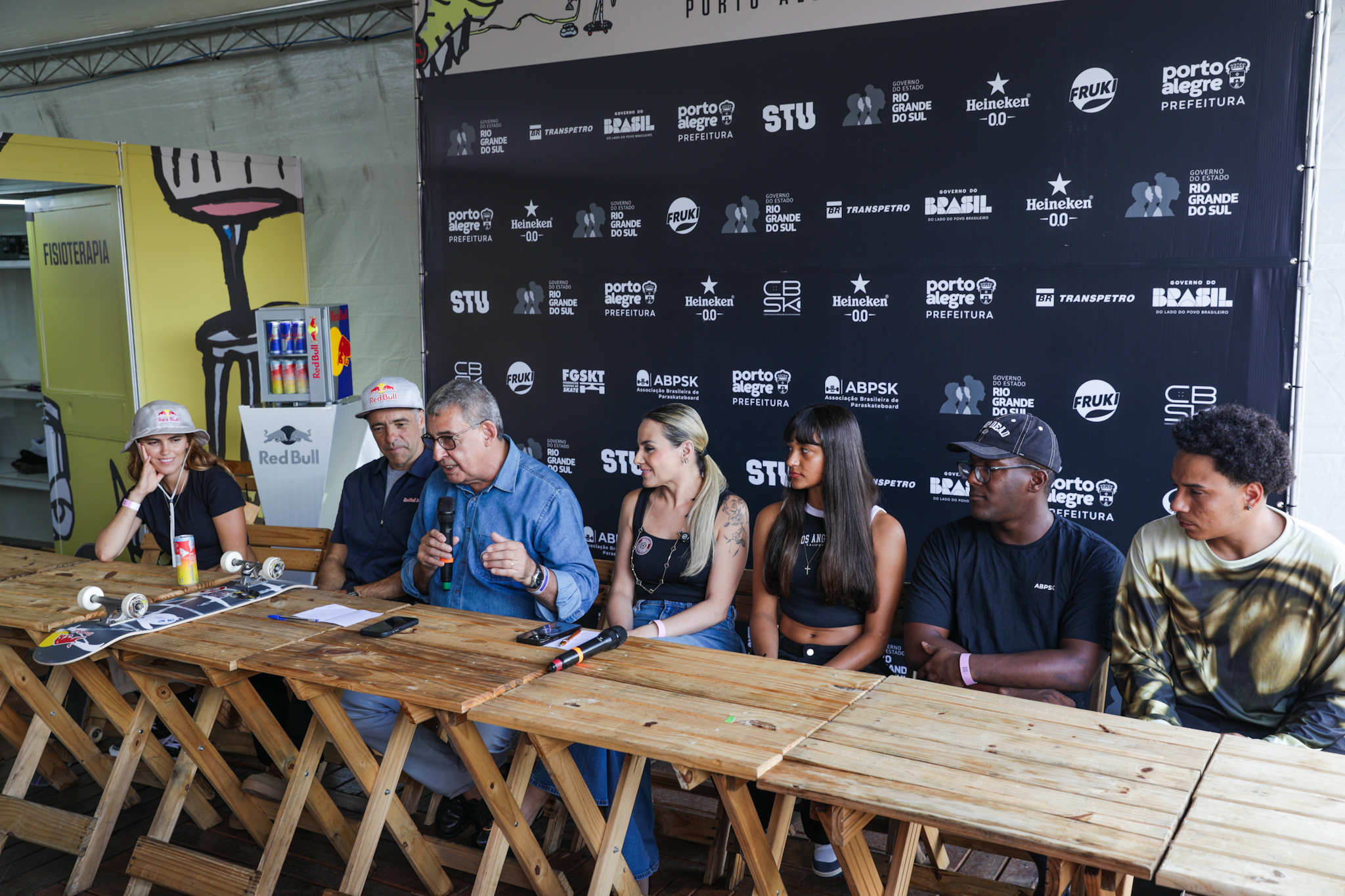 Porto Alegre, RS, 19/3/2026 - Nesta quinta-feira, 19, às 11h, aconteceu a coletiva de imprensa do STU National 2026 – Etapa Porto Alegre, no complexo de skate do trecho 3 da Orla do Guaíba. Além do prefeito Sebastião Melo, participaram do encontro os skatistas Sandro Dias, representante dos Superstars; e Yndiara Asp, da modalidade Park; João Lucas Alves e Maria Lúcia, do Street; e o paraskatista Tony Alves. Fotos: Pedro Piegas / PMPA