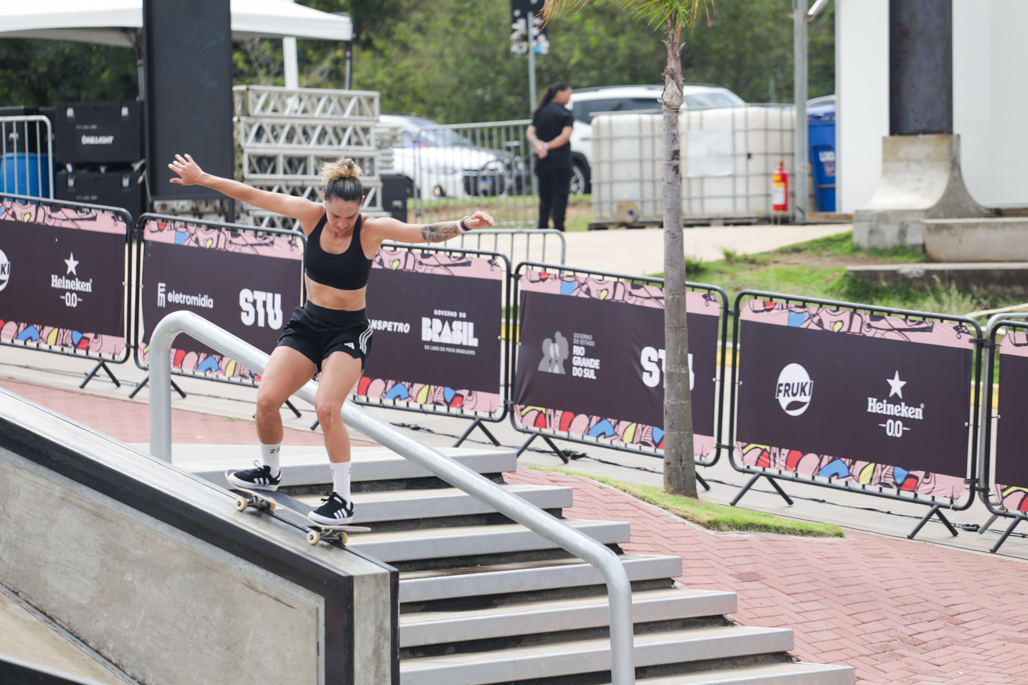 Porto Alegre, RS, 19/3/2026 - Nesta quinta-feira, 19, às 11h, aconteceu a coletiva de imprensa do STU National 2026 – Etapa Porto Alegre, no complexo de skate do trecho 3 da Orla do Guaíba. Além do prefeito Sebastião Melo, participaram do encontro os skatistas Sandro Dias, representante dos Superstars; e Yndiara Asp, da modalidade Park; João Lucas Alves e Maria Lúcia, do Street; e o paraskatista Tony Alves. Fotos: Pedro Piegas / PMPA