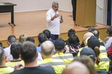 Porto Alegre, RS, Brasil, 20/03/2026: O prefeito Sebastião Melo sancionou nesta sexta-feira, 20, durante solenidade no Auditório da Aiamu (rua dos Andradas, 1.234, 8º andar, bloco B, bairro Centro Histórico), a lei que institui o Sistema Municipal de Fiscalização. O ato marca um passo importante na modernização da gestão pública, com foco na integração das ações de fiscalização, aumento da eficiência operacional e qualificação do atendimento à população em Porto Alegre. Aprovada pela Câmara Municipal em fevereiro, a nova legislação reorganiza e padroniza as atividades fiscalizatórias no município, unificando estruturas e criando uma nova carreira de Agente de Fiscalização Municipal. Foto: Alex Rocha/PMPA