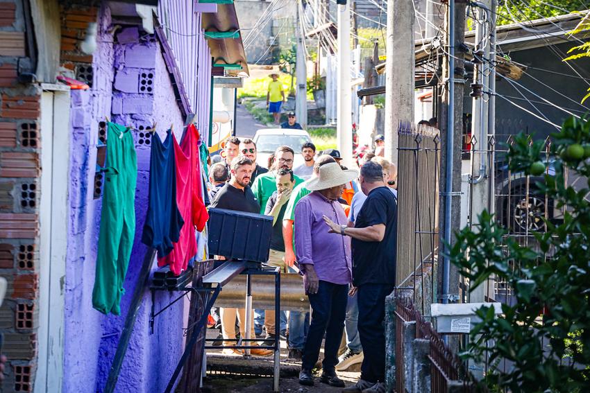 Porto Alegre, RS, Brasil, 21/03/2026: A Prefeitura de Porto Alegre realizou neste sábado, 21, mais uma edição do programa Mais Comunidade, desta vez na Região Noroeste da Capital. A atividade teve início às 8h15, com a presença do prefeito Sebastião Melo, acompanhado por secretários municipais e diretores de departamentos, que percorreram diferentes pontos da região para ouvir moradores e verificar de perto as demandas da comunidade. Foto: Alex Rocha/PMPA