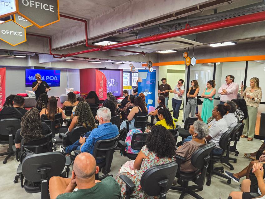 Porto Alegre, RS, Brasil, 21/03/2026: Cinquenta empreendedores de territórios periféricos de Porto Alegre foram selecionados para uma capacitação gratuita do programa HackaPOA, iniciativa da prefeitura que busca ampliar o acesso ao ecossistema de inovação e levar representantes das comunidades a um dos maiores eventos do setor na América Latina: o South Summit Brazil. A formação foi realizada neste sábado, 21, no Co.nectar Hub, no Centro Histórico, com conteúdos voltados à inovação, networking e identificação de oportunidades dentro do ecossistema empreendedor. Foto: Giulian Serafim/PMPA