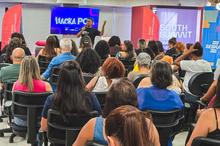 Porto Alegre, RS, Brasil, 21/03/2026: Cinquenta empreendedores de territórios periféricos de Porto Alegre foram selecionados para uma capacitação gratuita do programa HackaPOA, iniciativa da prefeitura que busca ampliar o acesso ao ecossistema de inovação e levar representantes das comunidades a um dos maiores eventos do setor na América Latina: o South Summit Brazil. A formação foi realizada neste sábado, 21, no Co.nectar Hub, no Centro Histórico, com conteúdos voltados à inovação, networking e identificação de oportunidades dentro do ecossistema empreendedor. Foto: Giulian Serafim/PMPA
