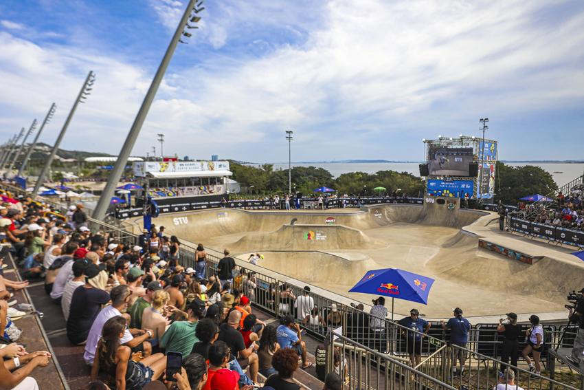 Porto Alegre, RS, Brasil, 21/03/2026: O STU National 2026 prossegue neste fim de semana, com a disputa das semifinais neste sábado, 21. A disputa, realizada no Trecho 3 da Orla do Guaíba, abrindo o circuito brasileiro de skate, reúne grandes nomes do país nas modalidades olímpicas street e park. Os ingressos gratuitos garantem acesso às arquibancadas e áreas comuns do evento. Cada pessoa pode retirar até dois ingressos, sendo que o ingresso solidário prevê a doação de 1 kg de alimento não perecível. A capital gaúcha recebe o STU pelo quinto ano consecutivo, com apoio da Prefeitura de Porto Alegre. Foto: Alex Rocha/PMPA