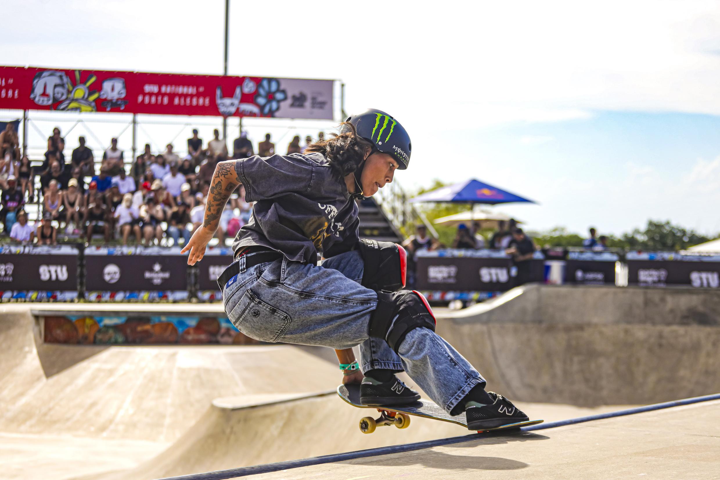 Porto Alegre, RS, Brasil, 21/03/2026: O STU National 2026 prossegue neste fim de semana, com a disputa das semifinais neste sábado, 21. A disputa, realizada no Trecho 3 da Orla do Guaíba, abrindo o circuito brasileiro de skate, reúne grandes nomes do país nas modalidades olímpicas street e park. Os ingressos gratuitos garantem acesso às arquibancadas e áreas comuns do evento. Cada pessoa pode retirar até dois ingressos, sendo que o ingresso solidário prevê a doação de 1 kg de alimento não perecível. A capital gaúcha recebe o STU pelo quinto ano consecutivo, com apoio da Prefeitura de Porto Alegre. Foto: Alex Rocha/PMPA