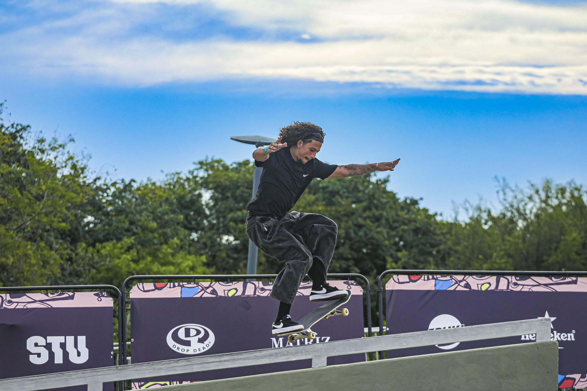 Porto Alegre, RS, Brasil, 21/03/2026: O STU National 2026 prossegue neste fim de semana, com a disputa das semifinais neste sábado, 21. A disputa, realizada no Trecho 3 da Orla do Guaíba, abrindo o circuito brasileiro de skate, reúne grandes nomes do país nas modalidades olímpicas street e park. Os ingressos gratuitos garantem acesso às arquibancadas e áreas comuns do evento. Cada pessoa pode retirar até dois ingressos, sendo que o ingresso solidário prevê a doação de 1 kg de alimento não perecível. A capital gaúcha recebe o STU pelo quinto ano consecutivo, com apoio da Prefeitura de Porto Alegre. Foto: Alex Rocha/PMPA