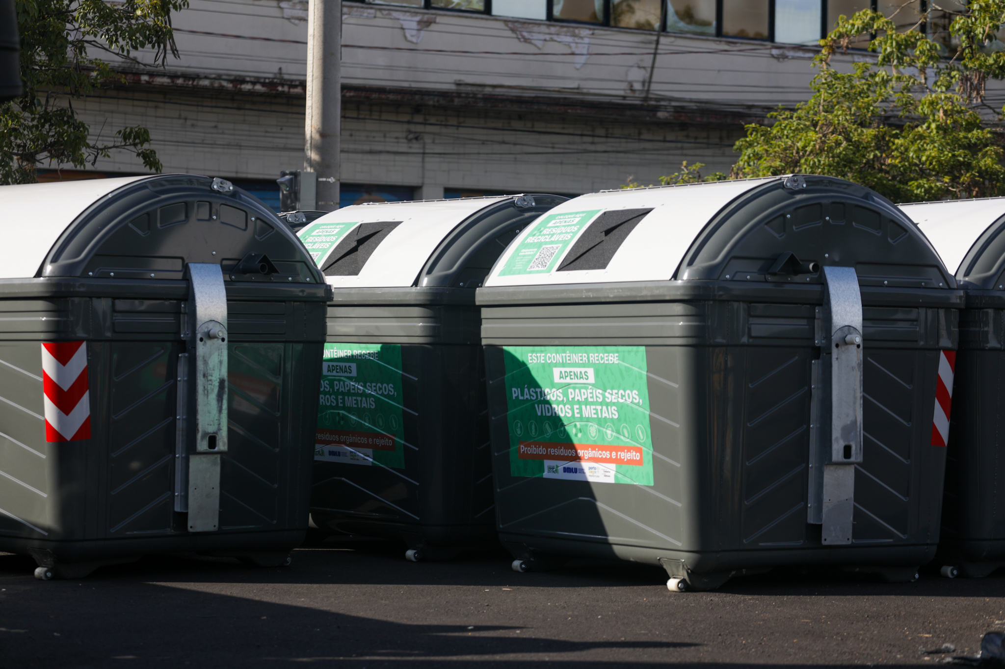 Porto Alegre, RS, 23/3/2026 - A partir da segunda-feira, 23, o Departamento Municipal de Limpeza Urbana (DMLU) iniciou a substituição dos contêineres da Coleta Seletiva no bairro Cidade Baixa. Os atuais equipamentos de plástico, na cor verde, foram substituídos por 90 contêineres metálicos, mais resistentes, no modelo com tampa fixa e abertura no formato boca de lobo. Fotos: Pedro Piegas / PMPA