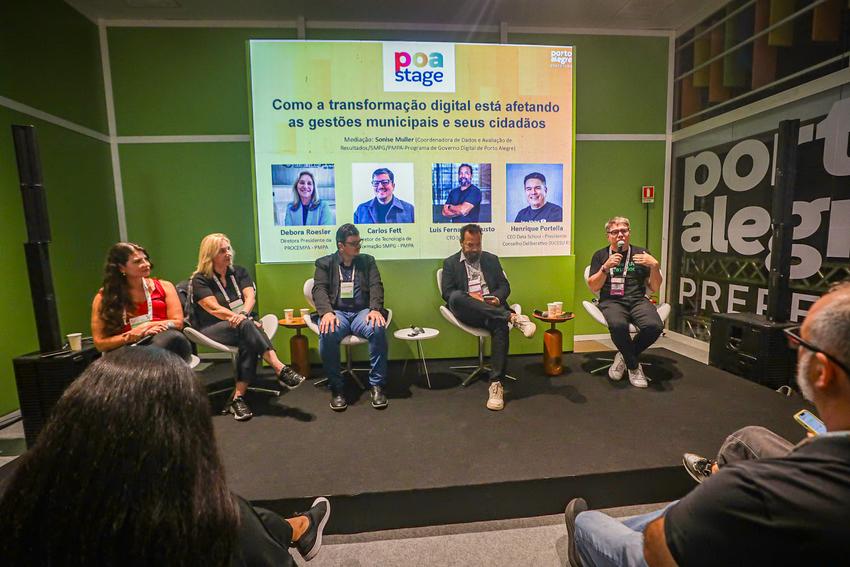 Porto Alegre, RS, Brasil, 25/03/2026: Na manhã desta quarta-feira (25), no espaço Poa Stage do South Summit Brazil 2026, foi realizado o painel Como a transformação digital está afetando as gestões municipais e seus cidadãos. Foto: Alex Rocha/PMPA
