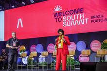 Porto Alegre, RS, 25/03/2026 - Cerimônia de boas vindas da manhã com a vice-prefeita de Porto Alegre, Betina Worm na Arena Stage, no South Summit Brazil 2026. Fotos: Pedro Piegas / PMPA