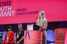 Porto Alegre, RS, 25/03/2026 - Cerimônia de boas vindas da manhã com a vice-prefeita de Porto Alegre, Betina Worm na Arena Stage, no South Summit Brazil 2026. Fotos: Pedro Piegas / PMPA