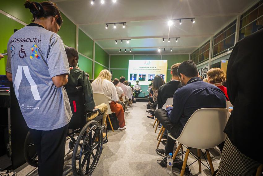 Porto Alegre, RS, Brasil, 25/03/2026: Na manhã desta quarta-feira (25), no espaço Poa Stage do South Summit Brazil 2026, foi realizado o painel Inovando na prática: exemplos de transformação na educação. Foto: Alex Rocha/PMPA