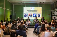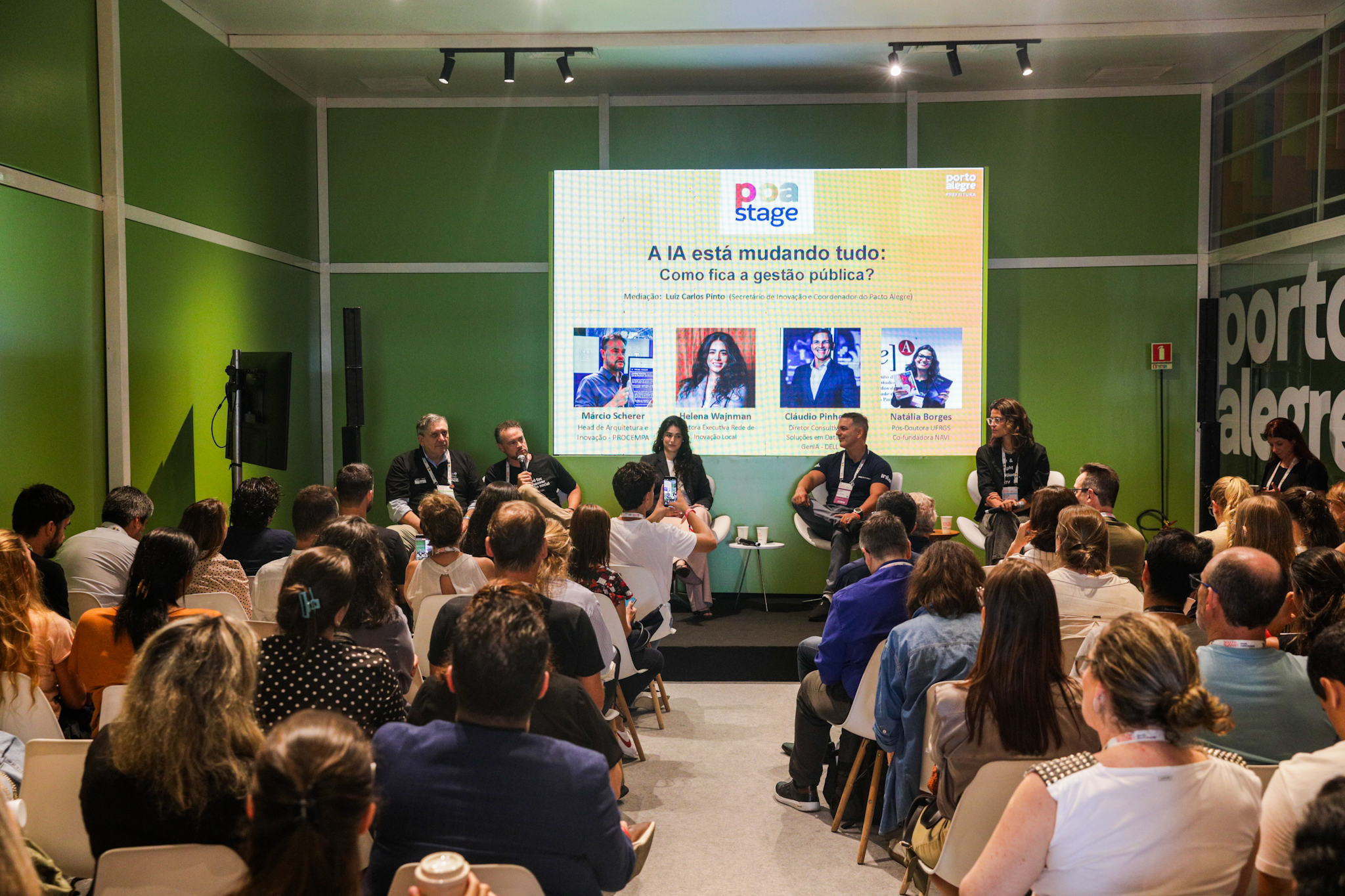 Porto Alegre, RS, 25/03/2026 - Painel: A IA está mudando tudo: Como fica a gestão pública? no POA STAGE no South Summit Brazil 2026. Mediação: Luiz Carlos Pinto (Secretário de Inovação e Coordenador do Pacto Alegre) Painelistas: Márcio Scherer - Head de Arquitetura e Inovação/PROCEMPA; Helena Wajnman - Diretora Executiva Rede de Inovação Local; Cláudio Pinheiro - Diretor Consultivo de Soluções em Data, AI e GenIA/DELL; Natália Borges - Pós-Doutora UFRGS/Co-fundadora NAVI. Fotos: Pedro Piegas / PMPA