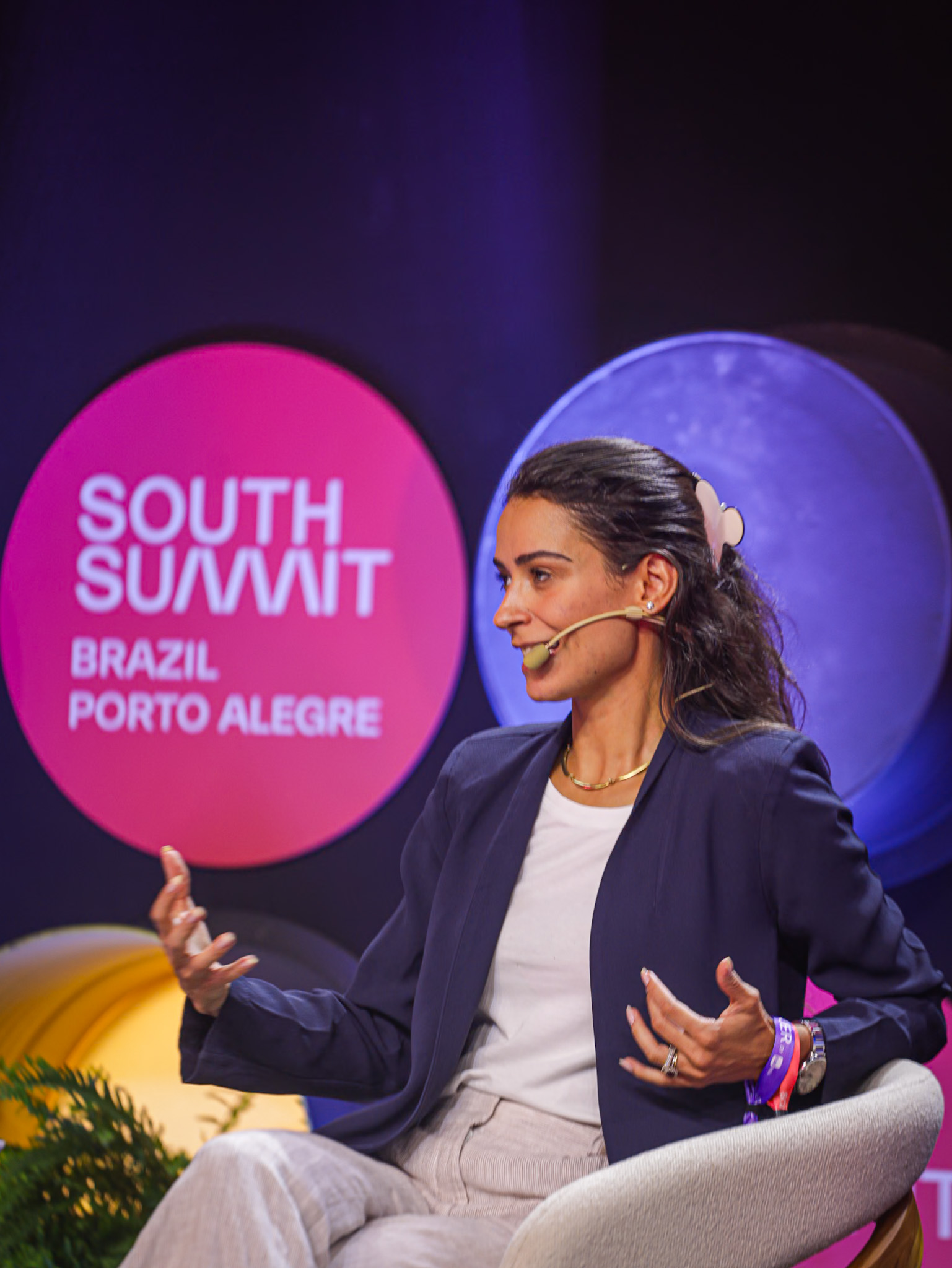 Porto Alegre, RS, Brasil, 25/03/2026: Na tarde desta quarta-feira (25), no espaço Arena Stage do South Summit Brazil 2026, foi realizado o Painel Como as plataformas liberam novas oportunidades, com a diretora-geral Brasil na Uber, Silvia Penna, e o cofundador do NeoFeed, Ralphe Manzoni Jr. Foto: Alex Rocha/PMPA